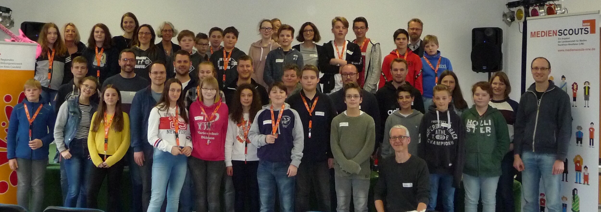 Zum ersten Mal fand in Düsseldorf die Medienscouts Convention NRW statt, eine echte Premiere für die Landesmedienanstalt NRW und unsere neuen Scouts aus Klasse 8! Neben spannenden Workshops, wie z.B. Game Development oder YouTube-Star als Traumberuf, gab es ein Meet and Greet mit einem Star! Der Comedian Faisal Kawusi nahm sich Zeit, Fragen rund um seine eigene Mediennutzung und sein Leben als Promi zu beantworten. Darüber hinaus gab es einen Austausch mit anderen Medienscouts mit wertvollen Tipps für den Schulalltag.