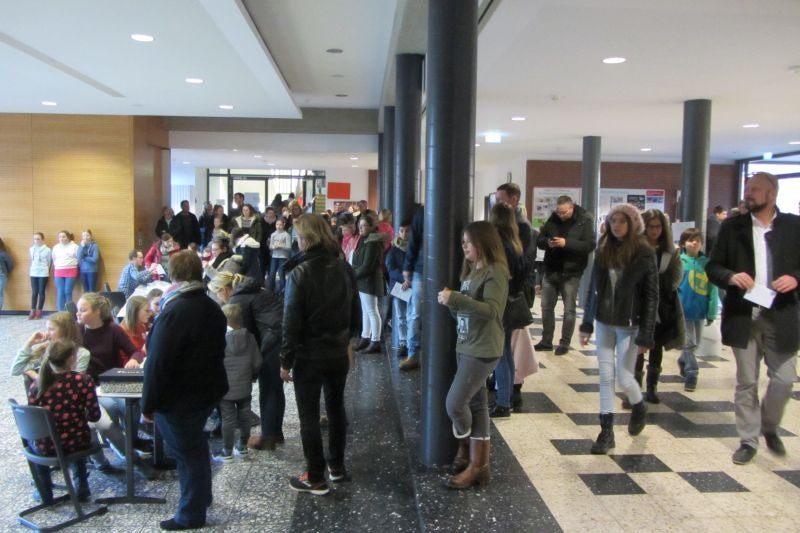 Am 18.01. fand der „Tag der offenen Tür“ statt. Viele Besucher schlenderten durch die Gänge und Räume, um sich einmal die Schule anzusehen. Auch viele Viertklässler aus den umliegenden Grundschulen waren gekommen, um sich einen Eindruck von einer bischöflichen Realschule zu machen. Die Schule präsentierte sich von den unterschiedlichsten Seiten: Ausstellungen zur Kunst und Textilgestaltung sowie der Imkerei, Infostände zum offenen Ganztag und Ghana-Projekt, Experimente zum Mitmachen in der Physik, Sowi/Politik und die Medienscouts präsentierten Infotafeln, Sport und Spiele in der Turnhalle, das Fach Geschichte zeigte eine Mumie und vieles mehr. Für das leibliche Wohl sorgten die Caféteria, Crêpes, Donats und Waffeln, sowie einen Stand der Hot Dogs verkauften. Vorführungen gab es bei der Streitschlichtung, in der Chemie und in der Aula zeigten Tänzer ihr können. Viele Marienschüler engagierten sich an diesem Nachmittag, um das bunte Schulleben zu zeigen. Dafür herzlichen Dank!