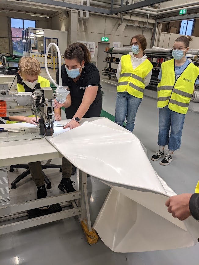 HUESKER Synthetic GmbH in Dülmen öffnet seine Produktionshalle für eine Schülergruppe der Marienschule
