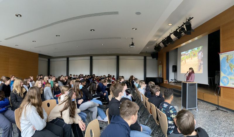 Theresa Hölscher war heute zu Gast an unserer Schule. In vielen Bildern, Videos und leidenschaftlichen Erzählungen berichtete sie unseren 5ern und 6ern von ihren Erfahrungen und Eindrücken ihrer Ghanareise und der Arbeit an einer ghanaischen Schule.
