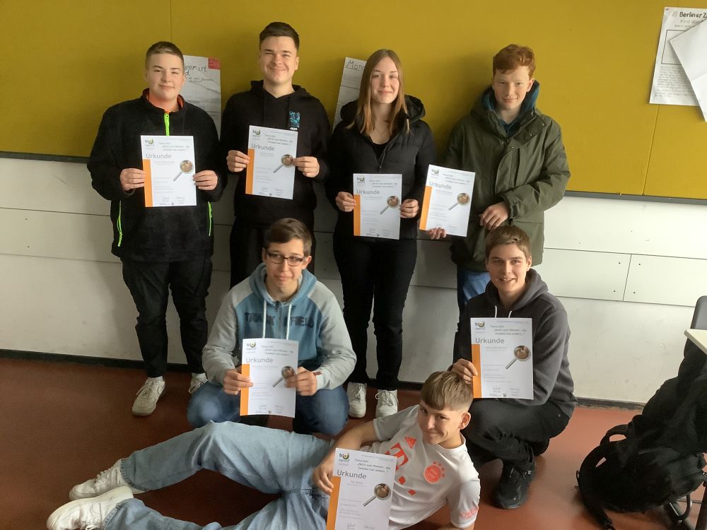 Große Freude in der Fachschaft Biologie am heutigen Freitag! Im Rahmen des Landeswettbewerbs bio-logisch-nrw 2023 konnten die diesjährigen Preisträger nun ihre Urkunden entgegennehmen. Über den Zeitraum mehrerer Monate hatten sich die Schülerinnen und Schüler des Bio- Wahlpflichtkurses mit vielen Facetten rund um das Thema Zwiebel beschäftigt, ihre Ergebnisse sorgfältig dokumentiert und anschließend dem Wettbewerbsgremium NRW vorgelegt. Sieben Teilnehmerinnen und Teilnehmer wurden für ihre Leistungen mit guten bis sehr guten Bewertungen bedacht. Der Schüler Julius Beckmann erreichte dabei die höchste Punktzahl. Wir gratulieren allen Beteiligten recht herzlich und bedanken uns für ihr zusätzliches Engagement!