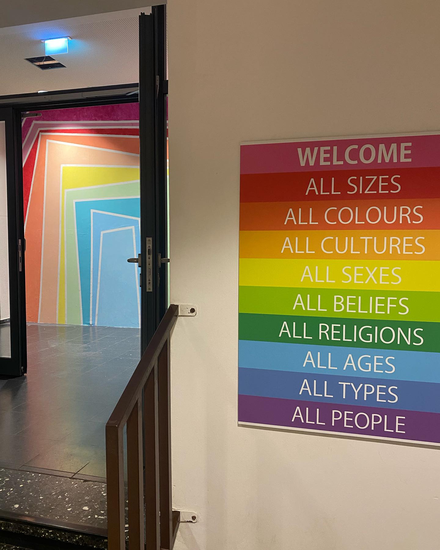 Ein Dank gilt auch Pia, Lucie und Osayetin, die die Wand vorbereitet haben. Und wer genau hinsieht, der erkennt vielleicht die Farben unseres Regenbogenschildes