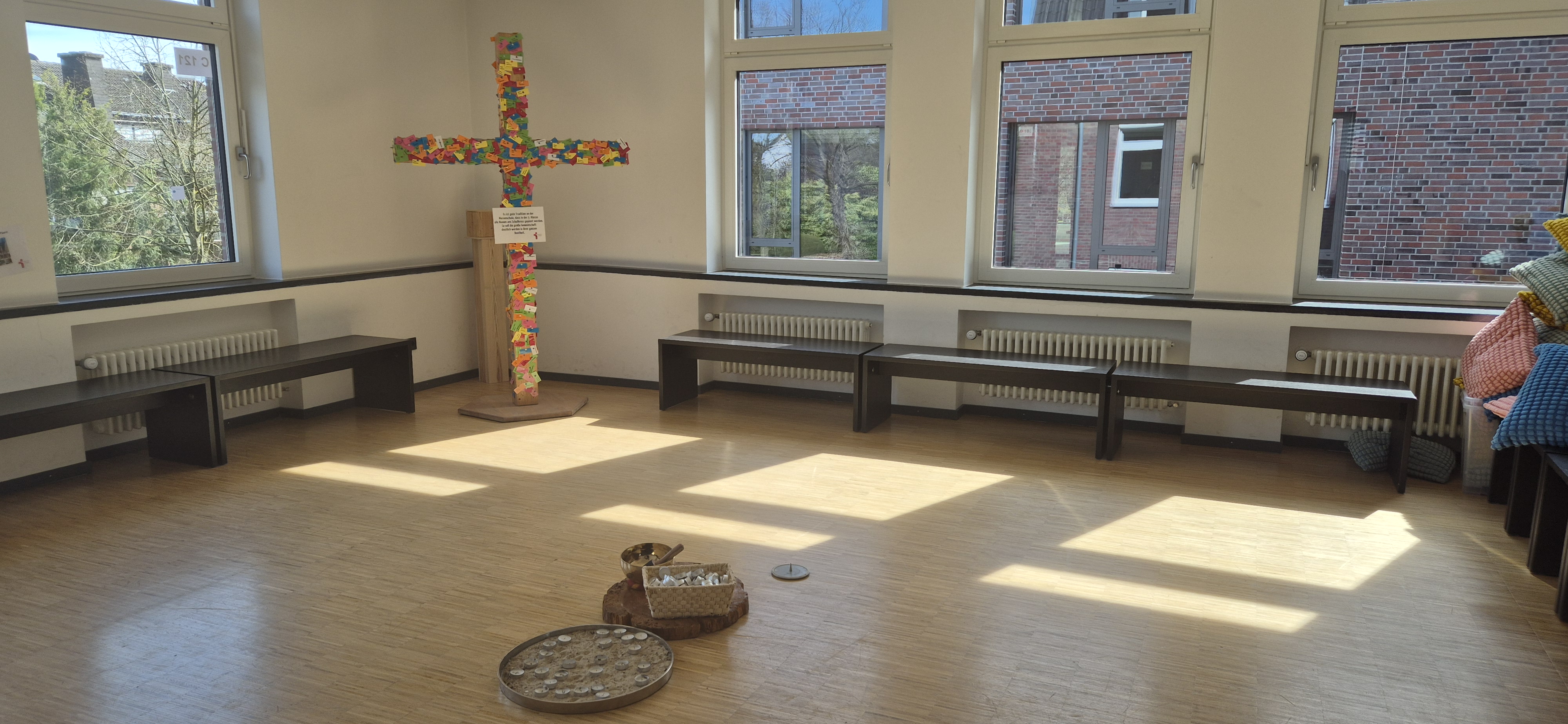 Ein prägendes Angebot für die Schulgemeinschaft sind die vielfältigen Formen von Gebeten, Meditationen und Gottesdienste, die im Schulalltag Platz finden und häufig in unserem Raum der Stille gestaltet werden.