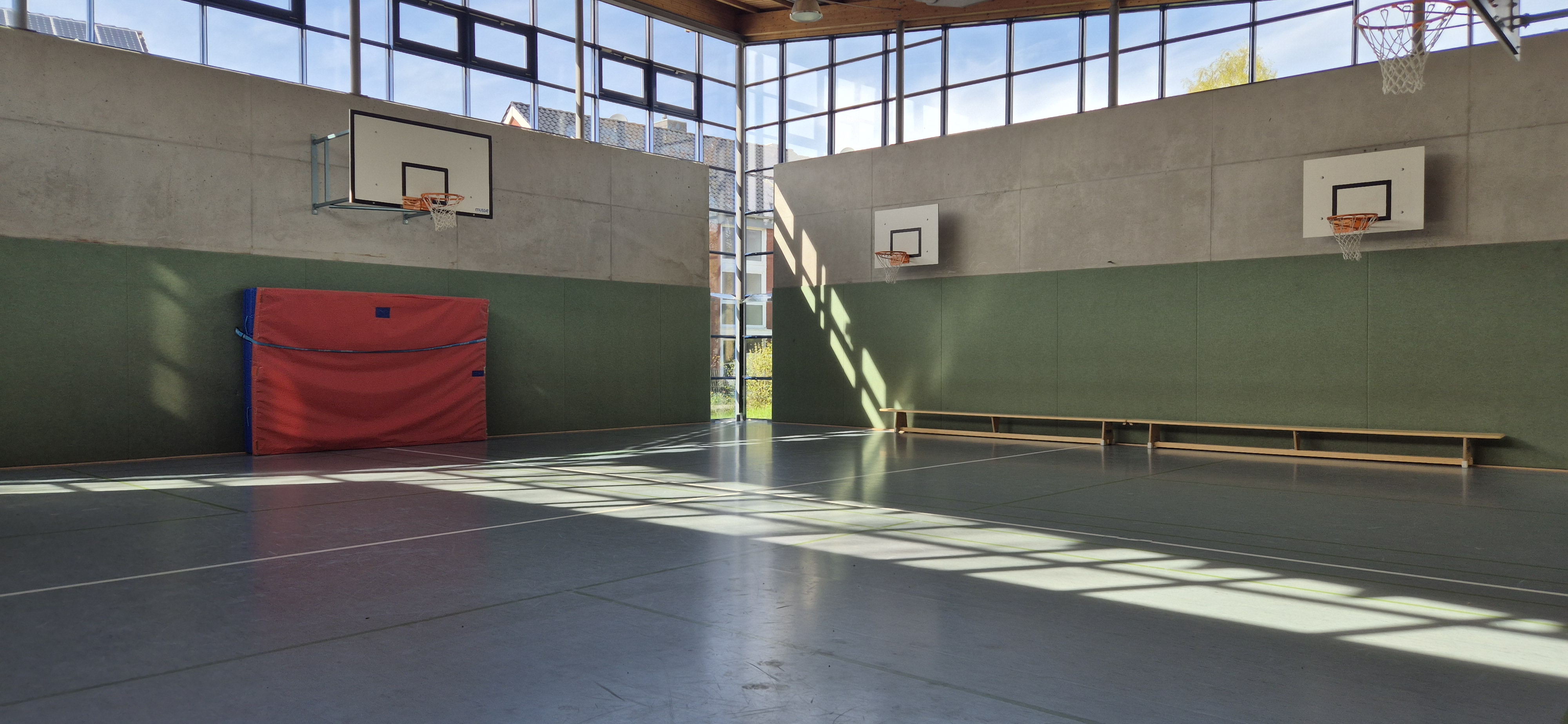 Unsere Schule verfügt über zwei Sporthallen. Beide sind mit qualtitativen Sportgeräten ausgestattet. Dadurch kann die sportliche Leistung unserer Schüler und Schülerinnen weiter gefördert werden.