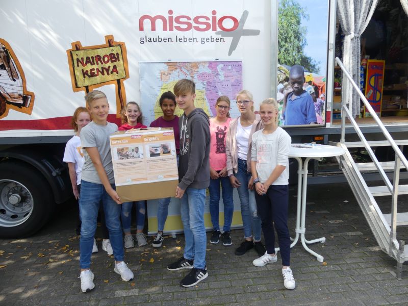 Der missio-Truck, eine Kooperation zwischen dem Caritasverband, der Marienschule und der Ökumenischen Flüchtlingshilfe, hat zwei Tage Station in Dülmen gemacht.