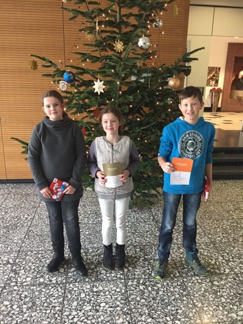 Ein ganz hohes Leistungsniveau bescheinigten sie allen Wettbewerbsteilnehmern. Dafür sprach auch der tosende Applaus, den die jugendlichen Vorleser von den Zuhörern erhielten. Lara Lewandowski überzeugte schließlich die Jury durch ihren Vortragsstil und darf als Siegerin des schulinternen Wettbewerbs die Marienschule beim kreisweiten Wettbewerb vertreten. Als Anerkennung erhielten alle drei Vorleser jeweils ein Buchpräsent.