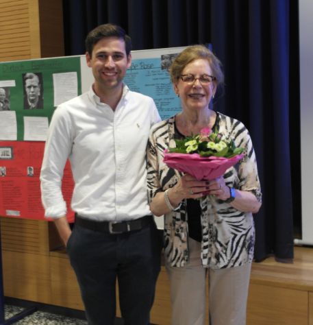 Nachdem Lehrer Hendrik Suelmann, der die Veranstaltung mit Eva Weyl initiierte, sich unter einem lang anhaltenden Applaus bei ihr herzlichst mit einem Blumenstrauß bedankte, imponierte Frau Weyl noch einmal das Auditorium, indem sie von ihrer herzlichen Freundschaft zu der sieben Jahre jüngeren Tochter des Lager-Westerbork-Kommandanten A. Gemmeker erzählt. Beide Frauen, die sich erst vor wenigen Jahren durch einen Zufall kennengelernt, sind Opfer des Systems geworden. Dieses Beispiel veranlasste Eva Weyl ein abschließendes Mal dazu allen Gästen zu verdeutlichen, dass „der Mensch zähle und man ihm mit Toleranz und Respekt begegnen solle“.