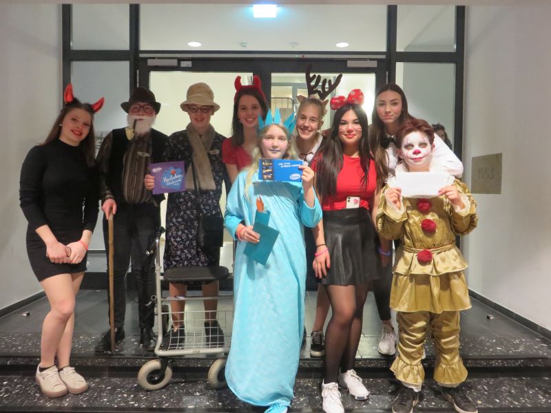 Wie in jedem Jahr stieg am Freitag vor Rosenmontag an der Marienschule die traditionelle Karnevalsdisco. Die fünf SV- Schülerinnen des 10. Jahrgangs, Philine Cordes, Lilli Lehmüller, Luisa Shakya Guvaju, Jessica Teutscher und Merle Wilhelmer organisierten mit tatkräftiger Unterstützung ihrer Jahrgangsstufe die diesjährige Karnevalsdisco. Die beiden SV-Lehrer, Ruth Laubrock und Frank Heinemann, organisierten und halfen ebenfalls. Natürlich sorgte gute Musik für ausgelassene Stimmung. Drei Stunden lang wurde mit Tanzspielen und Polonaisen, an denen sich auch die Lehrerinnen und Lehrer beteiligten, ausgelassen und fröhlich getanzt und gefeiert. Die Schülerinnen und Schüler der Klassen 5 bis 7 legten bei den Kostümen sehr viel Fantasie an den Tag. So waren beispielsweise ein Sumoringer, ein Spongebob und gleich mehrere Einhörner zu Gast. Für Spannung sorgte dann der Kostümwettbewerb, den eine Freiheitsstatue für sich entschied. Preise erhielten auch ein Rentnerehepaar und ein Clownskostüm. Als dieser sehr schöne Abend um 20 Uhr endete, waren einige Schülerinnen und Schüler der Klassen 7 etwas wehmütig: Sie dürfen im nächsten Jahr nicht mehr mitfeiern. Erst wenn sie in der Klasse 10 sind, können sie helfen, die Karnevalsparty dann für die unteren Klassen auszurichten. So werden sie einerseits viel Spaß haben und andererseits helfen, eine schöne Tradition am Leben zu halten, an die sich viele Schülergenerationen sehr gern zurück erinnern.