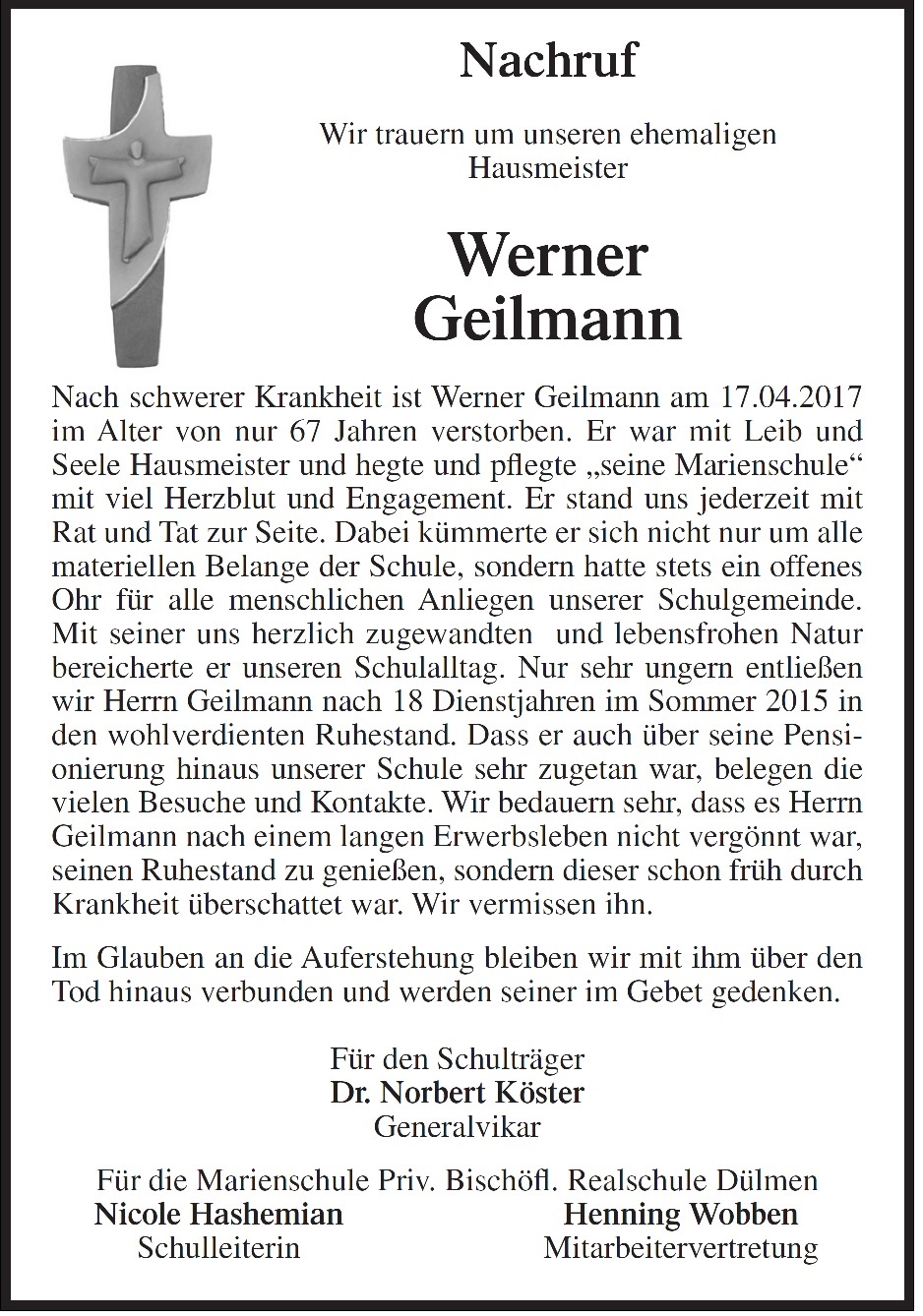 Nachdem Lehrer Hendrik Suelmann, der die Veranstaltung mit Eva Weyl initiierte, sich unter einem lang anhaltenden Applaus bei ihr herzlichst mit einem Blumenstrauß bedankte, imponierte Frau Weyl noch einmal das Auditorium, indem sie von ihrer herzlichen Freundschaft zu der sieben Jahre jüngeren Tochter des Lager-Westerbork-Kommandanten A. Gemmeker erzählt. Beide Frauen, die sich erst vor wenigen Jahren durch einen Zufall kennengelernt, sind Opfer des Systems geworden. Dieses Beispiel veranlasste Eva Weyl ein abschließendes Mal dazu allen Gästen zu verdeutlichen, dass „der Mensch zähle und man ihm mit Toleranz und Respekt begegnen solle“.