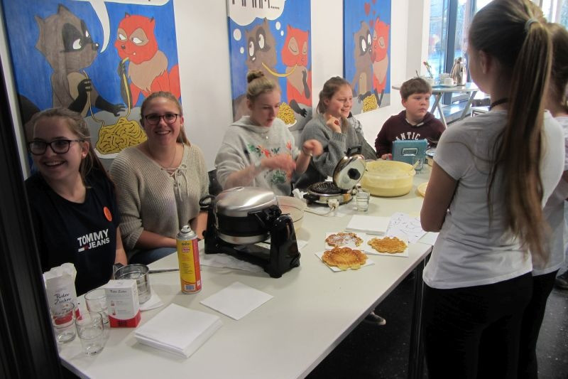 Am 18.01. fand der „Tag der offenen Tür“ statt. Viele Besucher schlenderten durch die Gänge und Räume, um sich einmal die Schule anzusehen. Auch viele Viertklässler aus den umliegenden Grundschulen waren gekommen, um sich einen Eindruck von einer bischöflichen Realschule zu machen. Die Schule präsentierte sich von den unterschiedlichsten Seiten: Ausstellungen zur Kunst und Textilgestaltung sowie der Imkerei, Infostände zum offenen Ganztag und Ghana-Projekt, Experimente zum Mitmachen in der Physik, Sowi/Politik und die Medienscouts präsentierten Infotafeln, Sport und Spiele in der Turnhalle, das Fach Geschichte zeigte eine Mumie und vieles mehr. Für das leibliche Wohl sorgten die Caféteria, Crêpes, Donats und Waffeln, sowie einen Stand der Hot Dogs verkauften. Vorführungen gab es bei der Streitschlichtung, in der Chemie und in der Aula zeigten Tänzer ihr können. Viele Marienschüler engagierten sich an diesem Nachmittag, um das bunte Schulleben zu zeigen. Dafür herzlichen Dank!