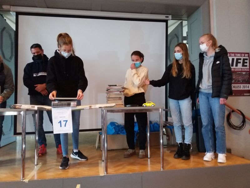 Zum 14. Mal fand der Papierbrücken-Wettbewerb am 29.11.2021 in Dülmen an der Hermann-Leeser-Realschule statt. Aus der Jahrgangsstufe 9 nahmen 4 Schülerinnen mit ihrem Physiklehrer André Baumhold teil. Es waren Schulen aus Dülmen, Coesfeld, Recklinghausen, Ibbenbüren, Bottrop, Olfen usw. vertreten.