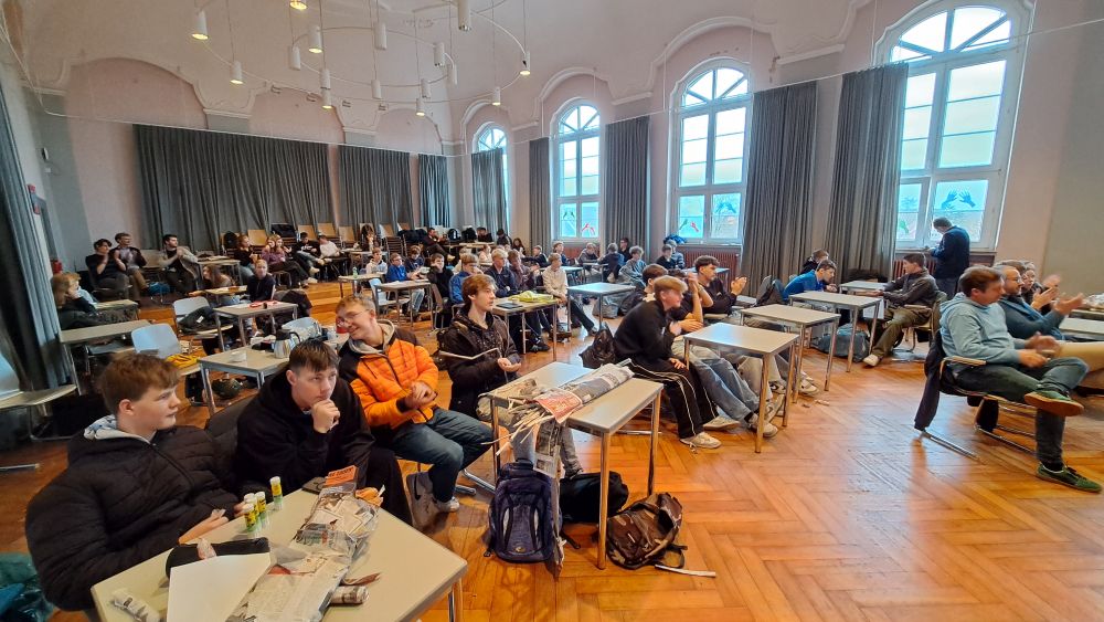 Der 17. Papierbrückenbau-Wettbewerb fand dieses Jahr am 25.11. in der Hermann-Leeser-Realschule statt. Elf Schulen nahmen teil, darunter Gymnasien, eine Gesamtschule und Realschulen. Fast 70 Schüler bauten in einer vorgegebenen Zeit nur mit Zeitungspapier, Bindfaden und Kleber Papierbrücken. Danach wurden sie alle einem Belastungstest unterzogen, dafür gab es Punkte. Die gab es aber auch für das Aussehen und für einen kleinen schriftlichen Test. Zwei Gruppen aus dem 7er Physikkurs von Herrn Baumhold nahmen zum ersten Mal teil und erreichten auch sofort gute Plätze: die 4er Gruppe erreichte den 4. Platz und die 3er Gruppe konnte sogar den 3. Platz erreichen. Herzlichen Glückwunsch!