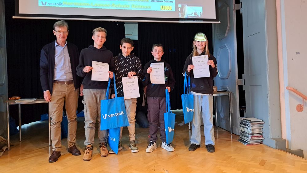 Der 17. Papierbrückenbau-Wettbewerb fand dieses Jahr am 25.11. in der Hermann-Leeser-Realschule statt. Elf Schulen nahmen teil, darunter Gymnasien, eine Gesamtschule und Realschulen. Fast 70 Schüler bauten in einer vorgegebenen Zeit nur mit Zeitungspapier, Bindfaden und Kleber Papierbrücken. Danach wurden sie alle einem Belastungstest unterzogen, dafür gab es Punkte. Die gab es aber auch für das Aussehen und für einen kleinen schriftlichen Test. Zwei Gruppen aus dem 7er Physikkurs von Herrn Baumhold nahmen zum ersten Mal teil und erreichten auch sofort gute Plätze: die 4er Gruppe erreichte den 4. Platz und die 3er Gruppe konnte sogar den 3. Platz erreichen. Herzlichen Glückwunsch!