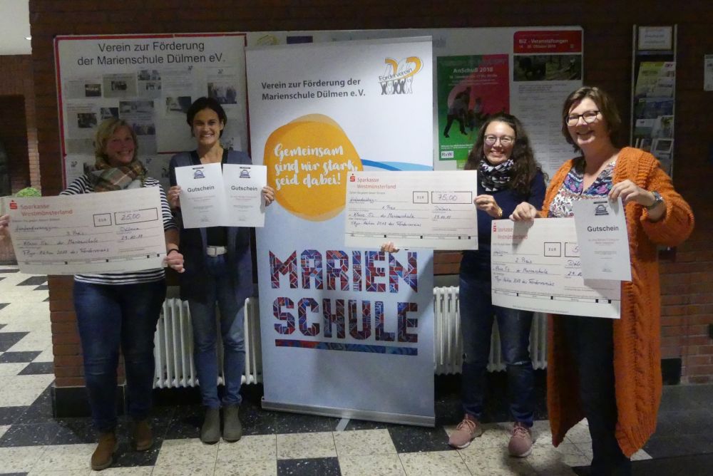 Von der 1. Vorsitzenden des Fördervereines, Frau Vagedes-Kuiter (Bild 2.v.r), wurden im Rahmen einer kleinen Feierstunde die Preise und Gutscheine an die Vertreter der Eltern und Klassen ausgehändigt. Hierbei gewinnt die neue 5’er Klasse, welche am meisten neue Mitglieder im Förderverein vorweist.